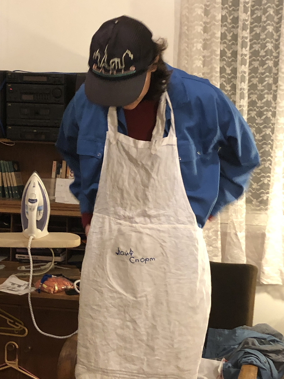 around the activity of sewing. We manually sew, mainly to fix clothes, put on buttons,